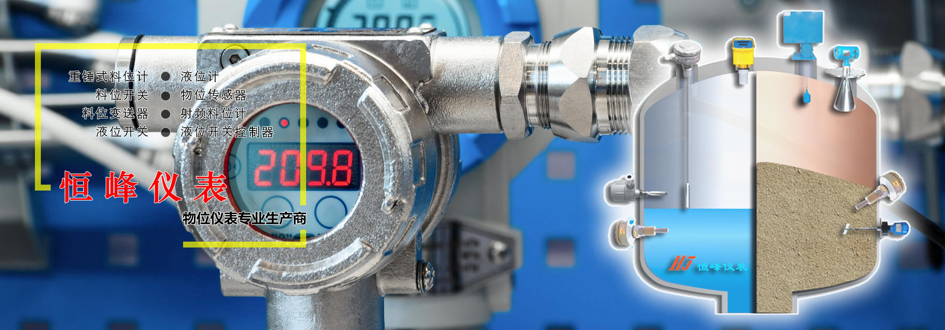 恒峰儀表: 重錘式料位計, 料位開關, 料位變送器, 液位開關, 液位計, 物位傳感器, 射頻料位計液位開關控制器 物位儀表專業生產商